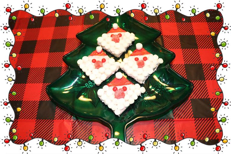 Finally, make the beard by placing 2 lines of marshmallows pieces on the bottom edges of the cracker. Do not forget to add a marshmallow at the top of the hat! 🙂